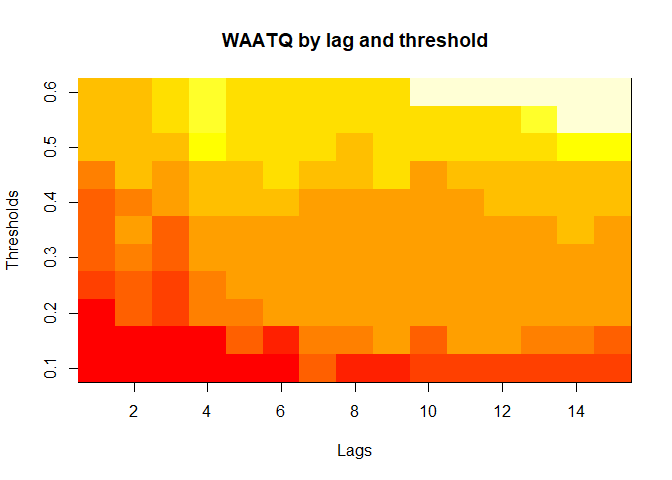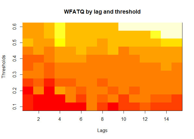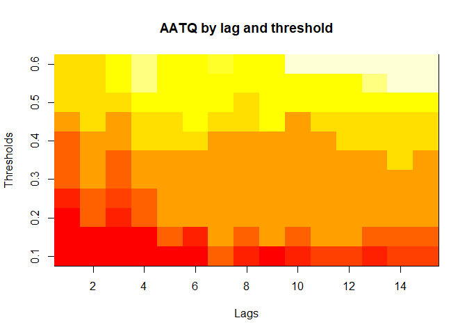 The final output region_metric will be a list of 6 matrices and 6 data frames. The matrices describe the values of metrics for respective lag and thresholds.