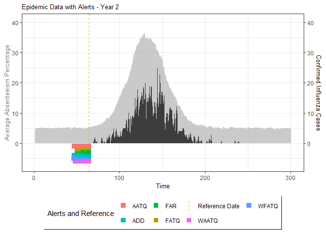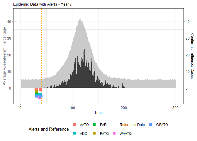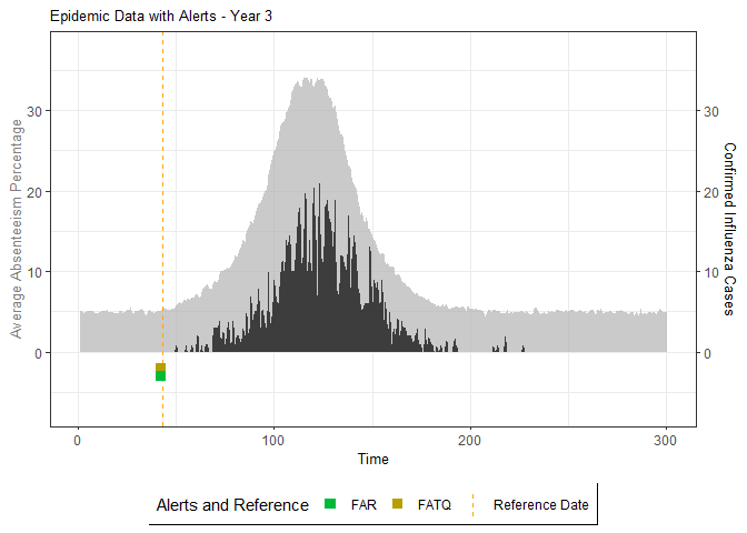 # Evaluate alarm metrics for epidemic detection