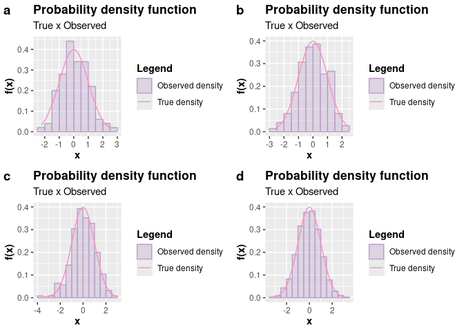 Please note the examples below on how to use the accept_reject() function to generate pseudo-random observations of discrete and continuous random variables. For further details, refer to the function’s documentation Reference and the Vignette.