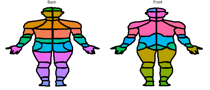 This is a basic example which shows you how to plot the front and back parts of the male CHOIR Body Map: