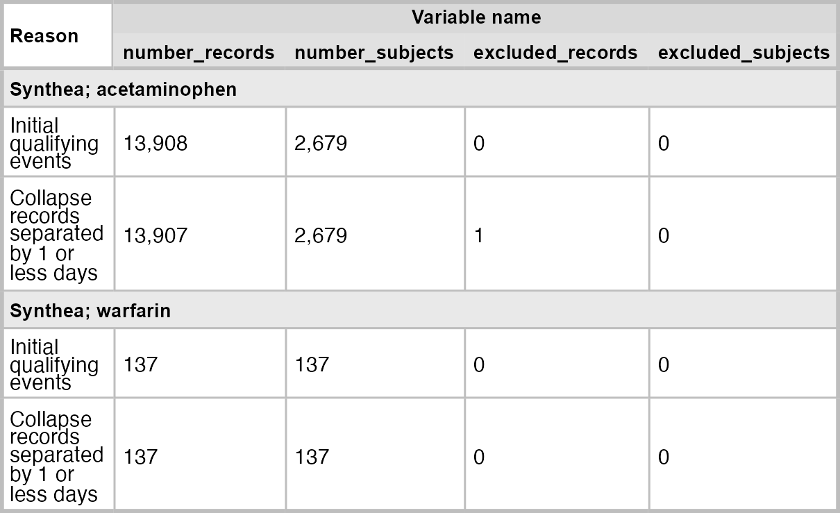 omopgenerics::filterGroup(cohort_name == "acetaminophen") |>