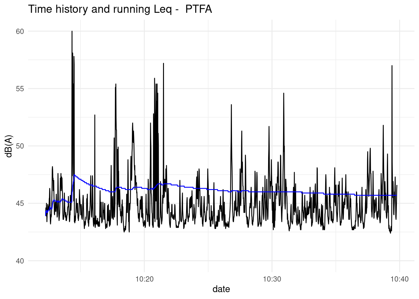#> [1] 96.52203PlotNoiseTimeHistory(df = PTFA, variable = "LAeq", mp = "PTFA", y_lim = c(40, 60))