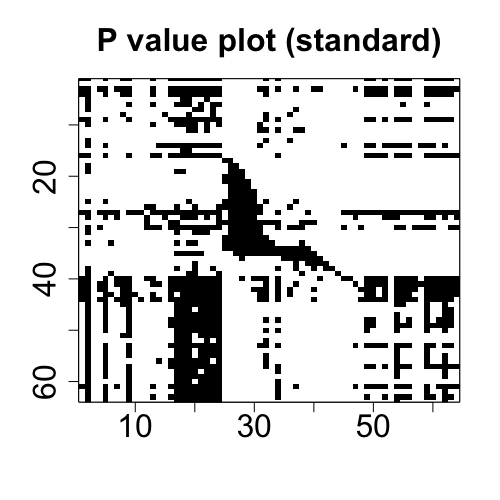## Draw the plots of two-way coefficient tensor (i.e., matrix) and p-value tensor.