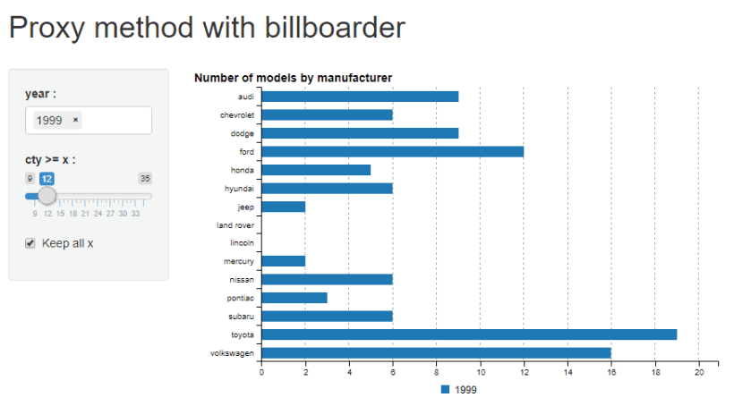 A proxy method is implemented to smoothly update charts in shiny applications, see below for details.