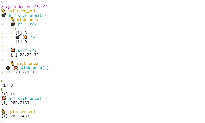 body, its arguments are printed by default when they’re evaluated.