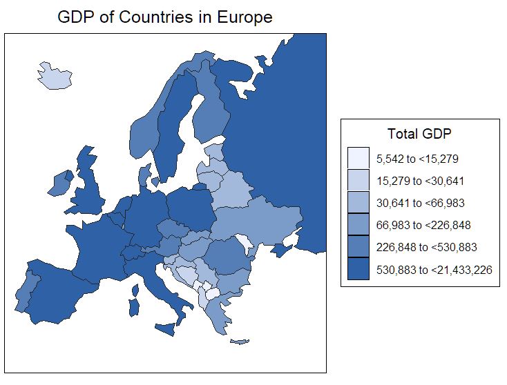 title = "GDP of Countries in Europe", legend = 'Total GDP')