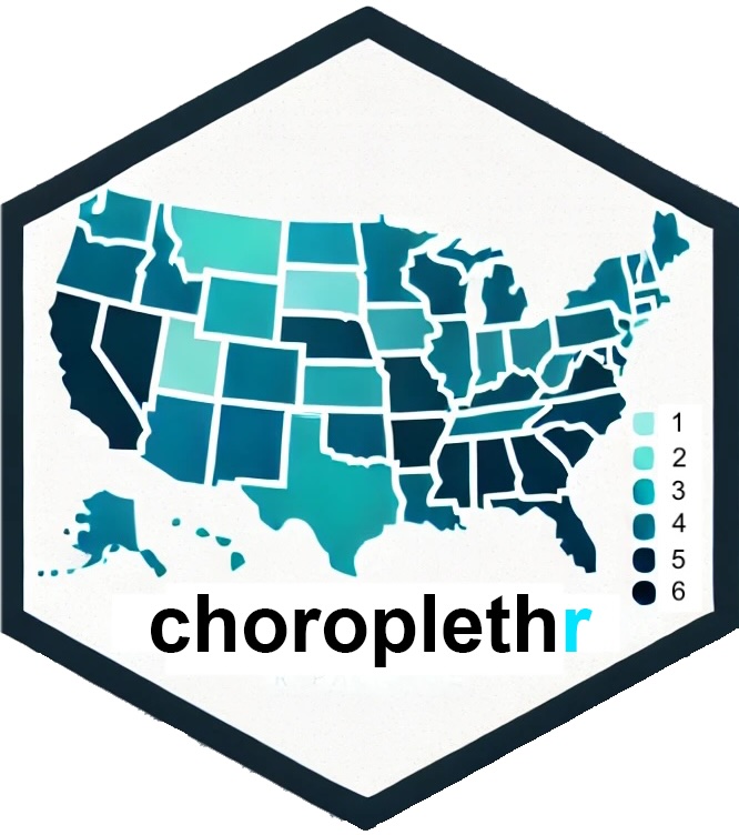 Note: admin1_choropleth() requires the rnaturalearthhires package to be installed. This package contains the needed high resolution subcountry maps, but is not presently hosted on CRAN due to its large file size. To use admin1_choropleth, please first install the remotes package, then install rnaturalearthhires from github: