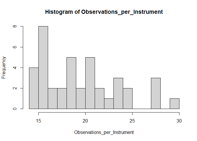 In the generated sample, the observed instrument takes 40 values with varying numbers of observations per instrument: