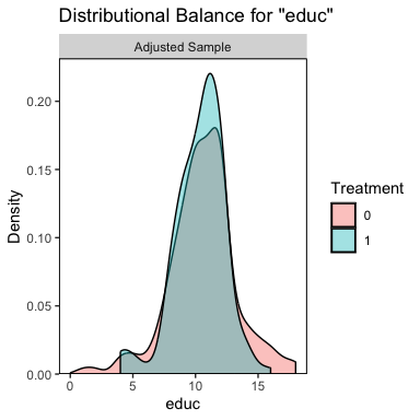 bal.plot(m.out, var.name = "educ")