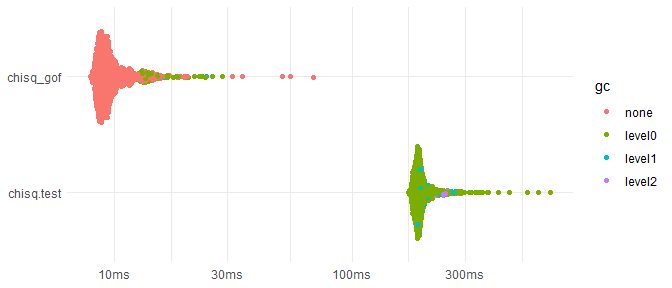 are implemented in C++, chisq_gof is much faster than