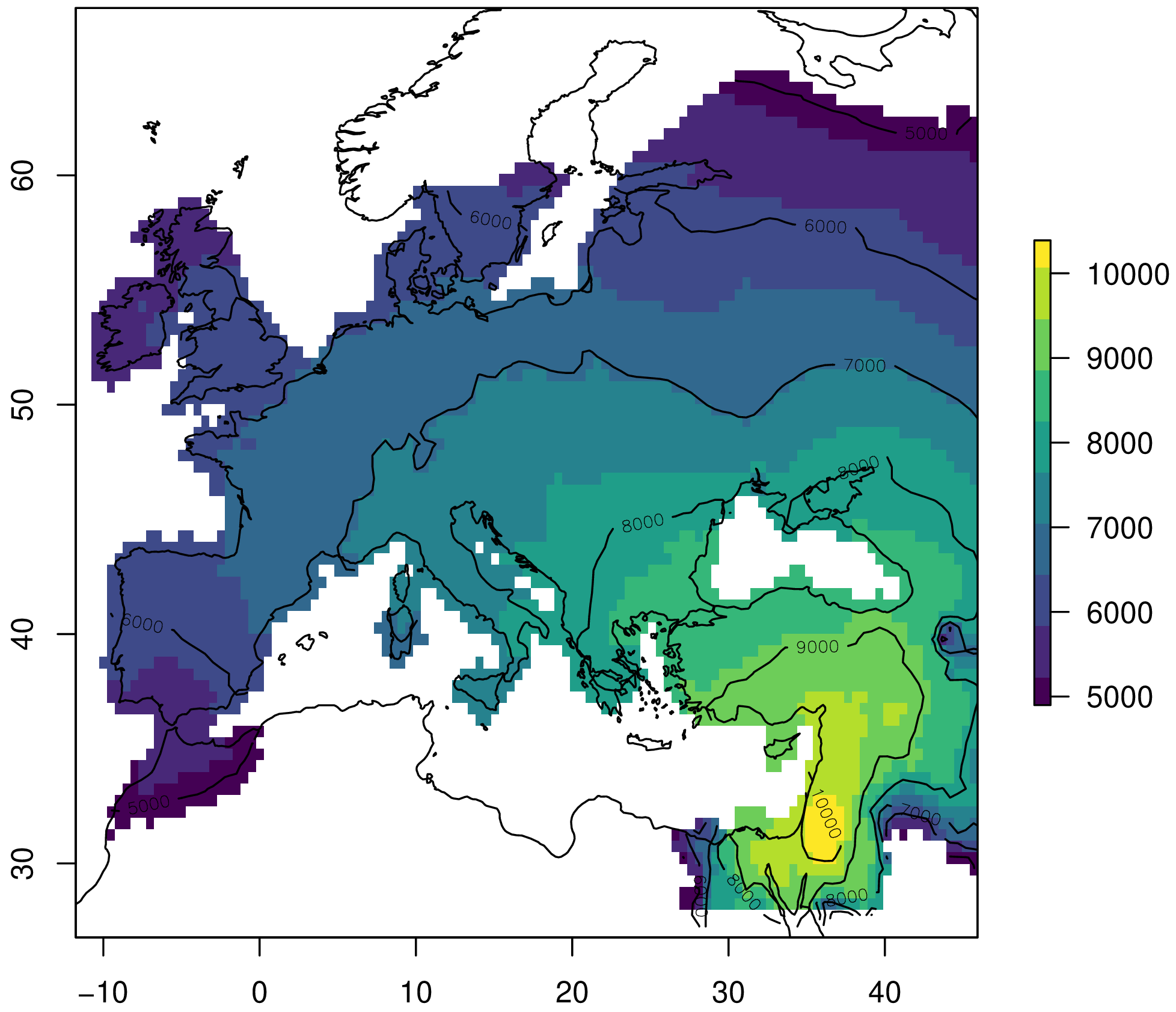 plot(sim, col=viridis(10), xlim=c(-12, 46), ylim=c(28, 66))