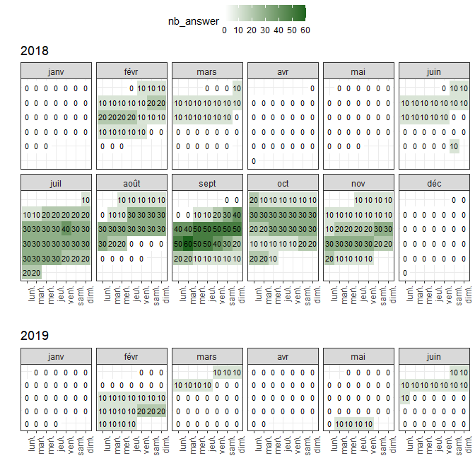 The calendar plot can provide a comprehensive overview of the time the data was collected, allowing you to identify periods (e.g., holidays vs. regular weeks), or detect missing observations for the whole dataset or a specific participant.