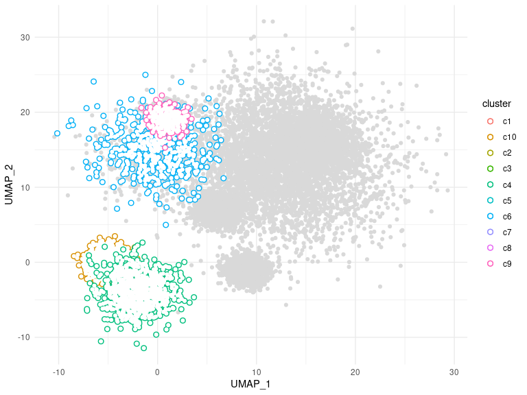 ggplot(clusters, aes(UMAP_1, UMAP_2, color = cluster)) +