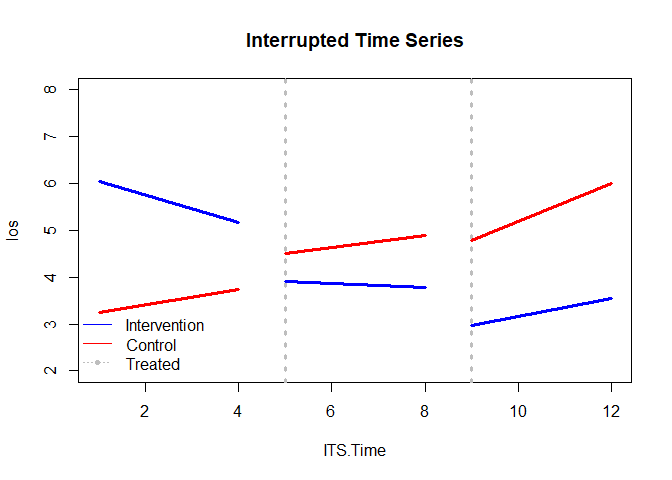 #> post 1st intervention was 0.022. The control group's non-significant