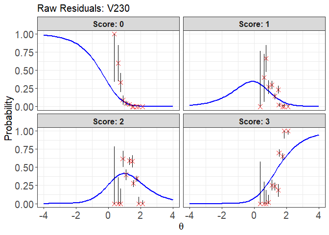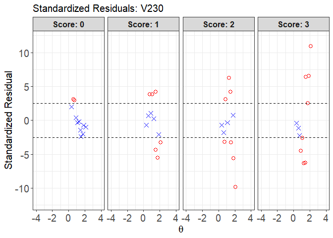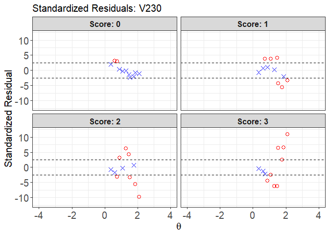 Also, model fit assessment includes item fit statistics such as: