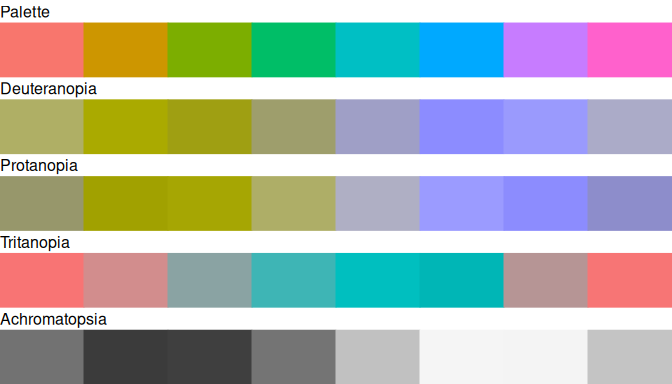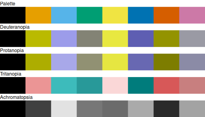 Color blindness affects a large number of individuals. When communicating scientific results color palettes must therefore be carefully chosen to be accessible to all readers.