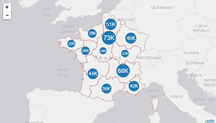 For a few years now, it has become easy to create interactive maps with R thanks to the package leaflet by the Rstudio team. Nevertheless, it only provides only a few functions to create basic shapes on a map, so the information that can be represented on a single map is limited: if you have some data associated to some points, you can only represent at most two variables by drawing circles and changing their radius and color according to data.