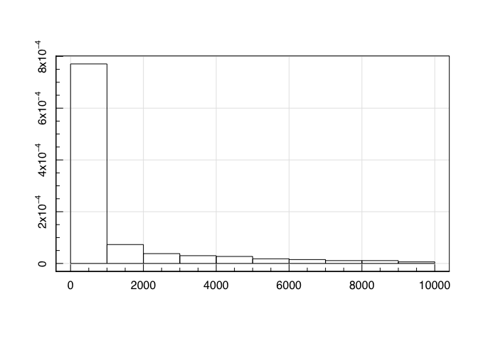 #> [1] "Using 9763 out of 10000 (97.63%) data points (237 < xlo & 0 > xhi)"