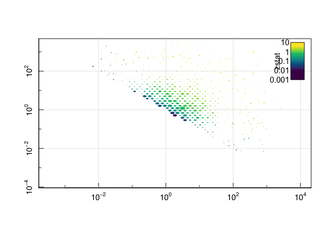 magbin(xydata, z=xydata[,1]*xydata[,2], colref='zstat', sizeref='count',