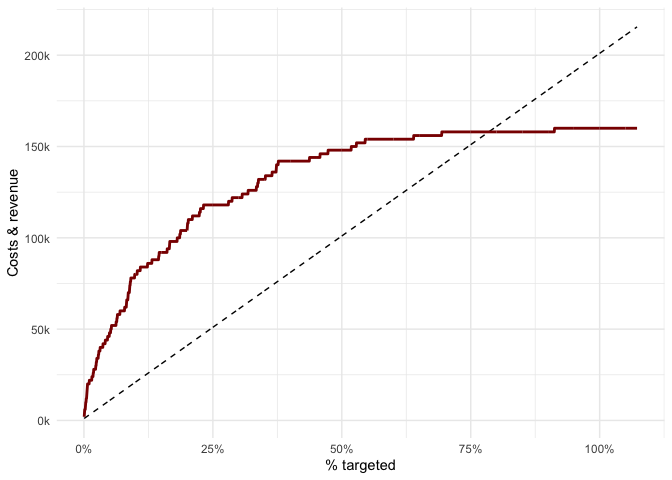 This package is intended to help data scientists and decision-makers understand the potential value of churn prediction models depending on how many customers are being targeted by a campaign.