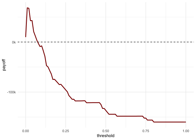 #> 6 0.05 20840optimal_threshold <- thresholds %>% filter(payoff == max(payoff))