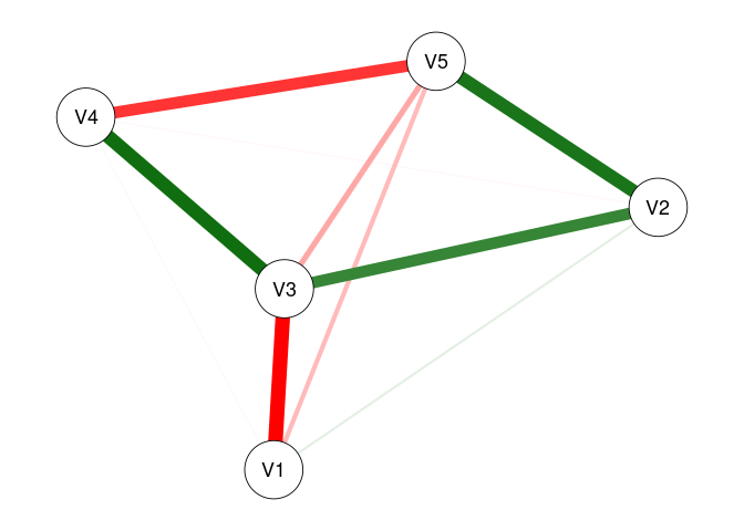 # Now, lets fit the saturated model where 'M' moderates all edges in the network