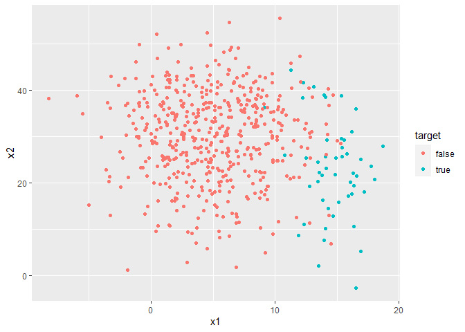 majority = data.frame(x1 = rnorm(500, 5, 4),