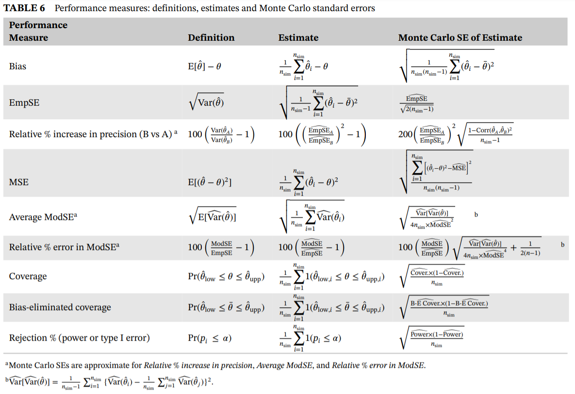 their Monte Carlo standard errors) for the assessment of statistical