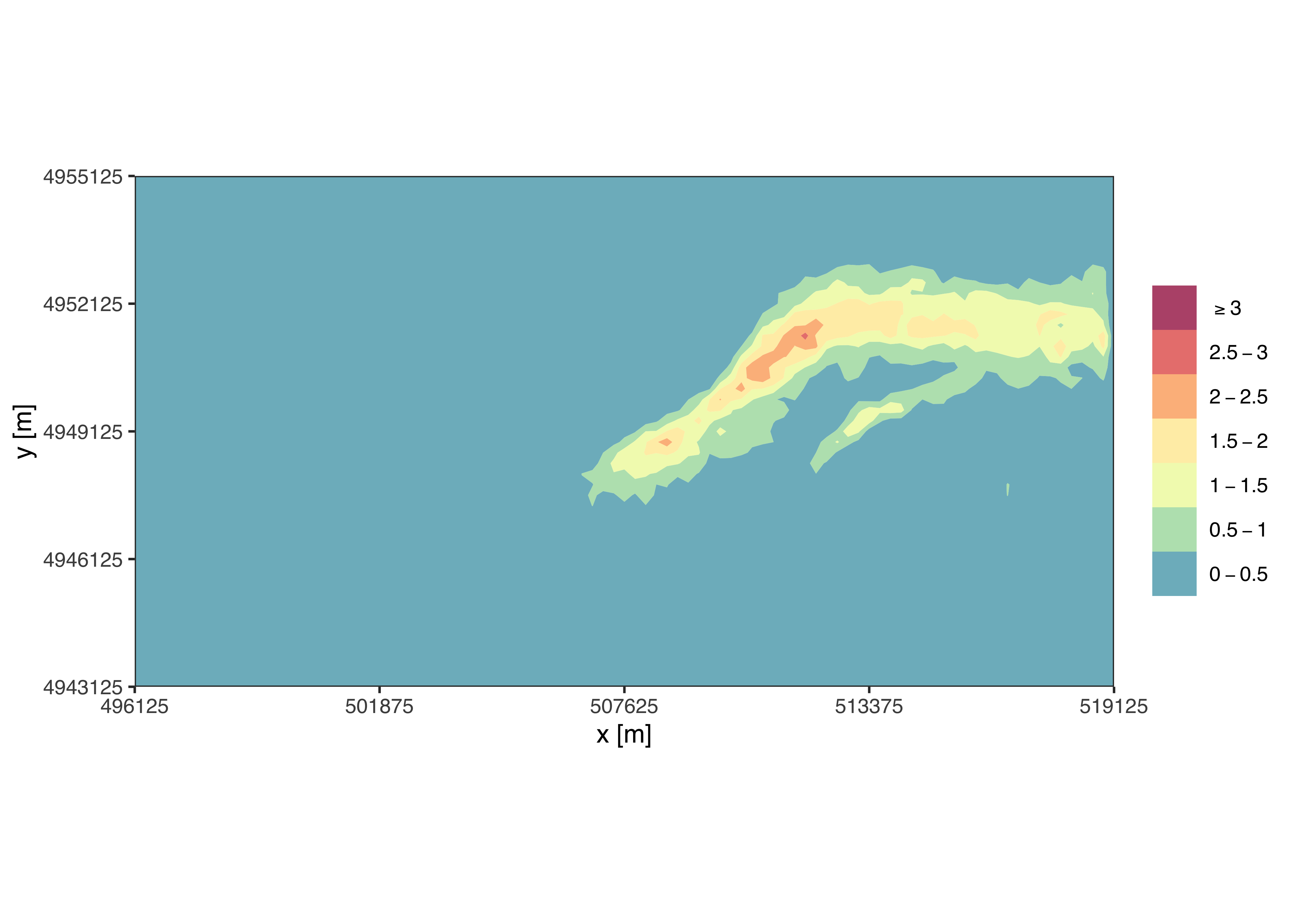 Concentration data are imported as a data.frame with x, y columns corresponding to the coordinates of the cell centre and a z column for grid values.