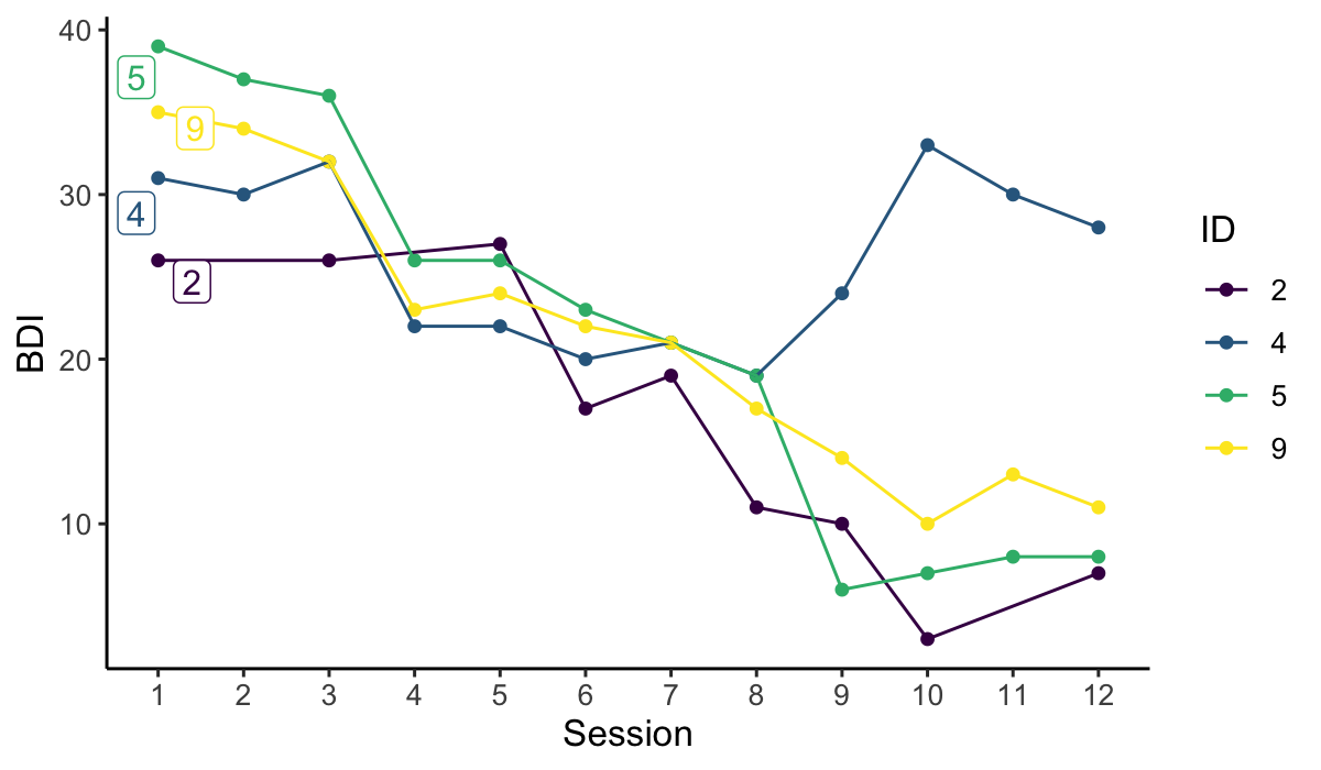 ylab = "BDI", xlab = "Session",