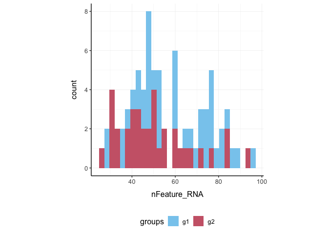##  2 CATG… SeuratPro…         85           52 0               A             g1