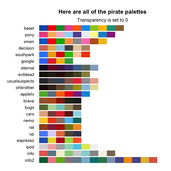To see all of the palettes, run piratepal("all")