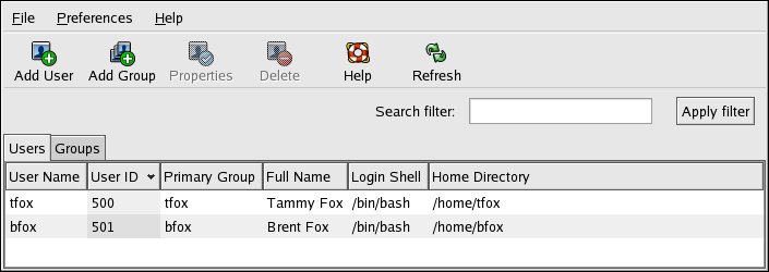 To use the User Manager, you must be running the X Window System, have root privileges, and have the redhat-config-users RPM package installed. To start the User Manager from the desktop, go to the Main Menu Button (on the Panel) => System Settings => Users & Groups. Or, type the command redhat-config-users at a shell prompt (for example, in an XTerm or a GNOME terminal).