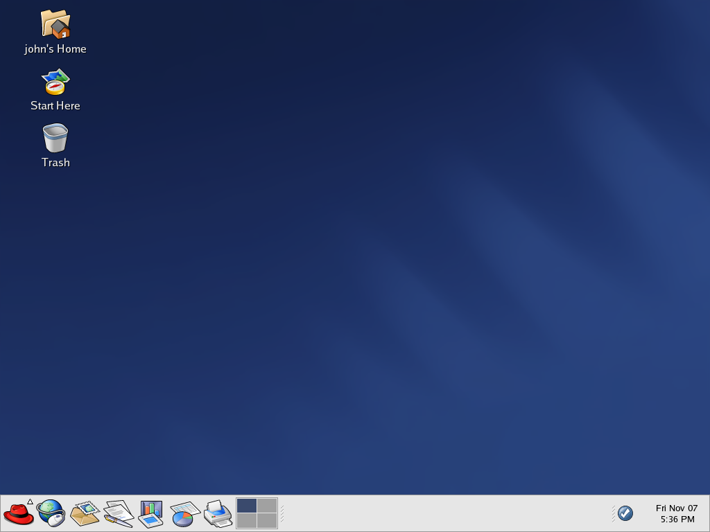 The graphical desktop gives you access to the applications and system settings on your computer. Notice that it offers three main tools to make use of the applications on your system: panel icons, desktop icons, and menus.